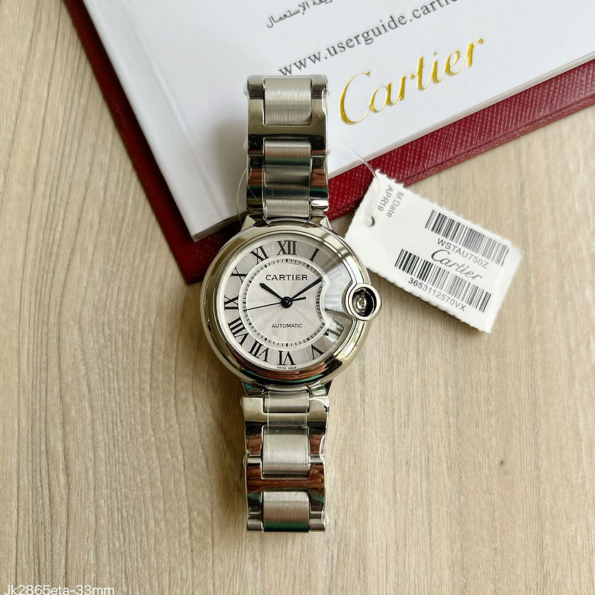 RELÓGIO SUPER CLONE MÁQUINA ETA CARTIER BALLON BLEU PRATA BRANCO 33MM