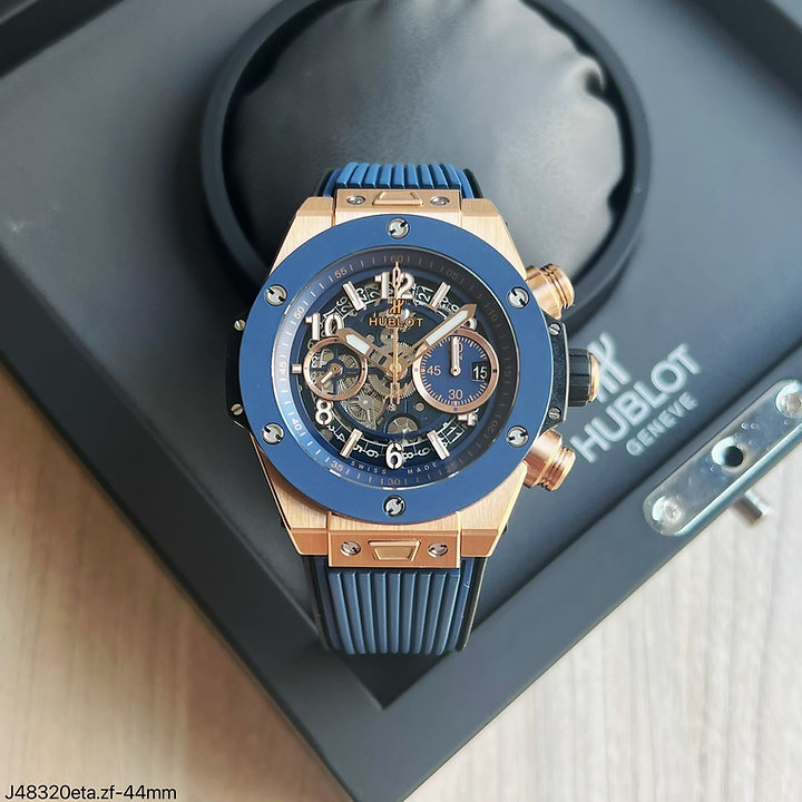 Além disso, a pulseira de borracha azul e o fecho deployant proporcionam conforto e facilidade de uso. Se você está procurando por um relógio que seja uma verdadeira declaração de estilo e qualidade, o Relógio Super Clone Máquina ETA Hublot Big Bang Unico 44mm Rose Azul é uma escolha excepcional.