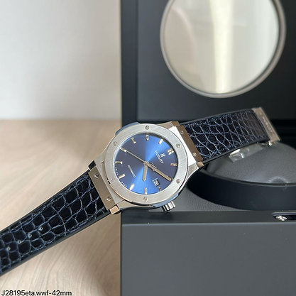 RELÓGIO SUPER CLONE MÁQUINA ETA HUBLOT CLASSIC FUSION 42MM AZUL COURO