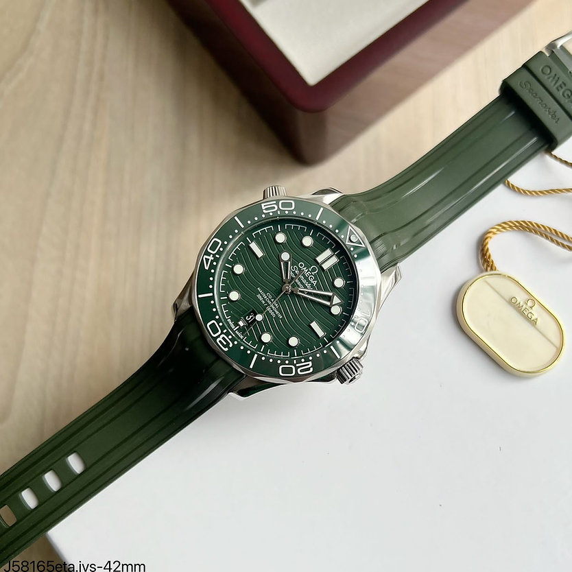 Relógio Super Clone Máquina ETA Omega Seamaster Diver 300M Verde 42mm Borracha – Uma Mistura Perfeita de Estilo e Qualidade