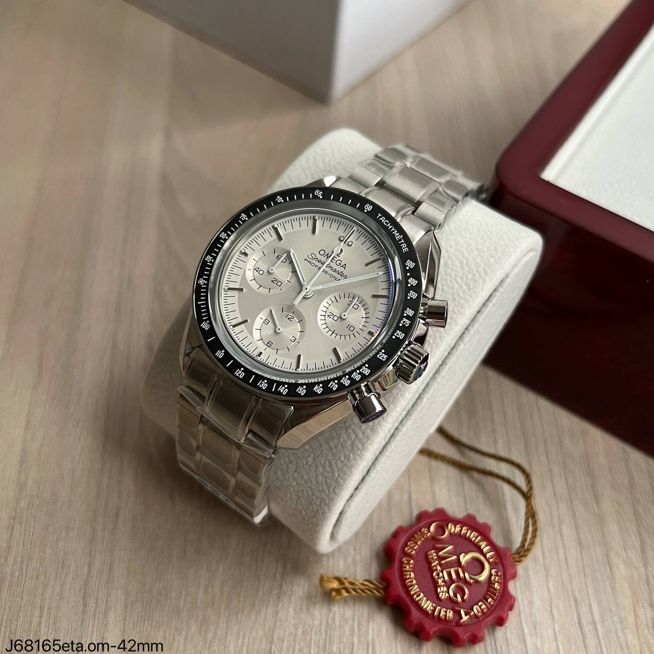 Horas, minutos, exibição de sub-segundos e cronógrafo, foguete  e terra no fundo da caixa