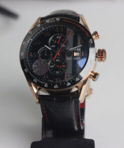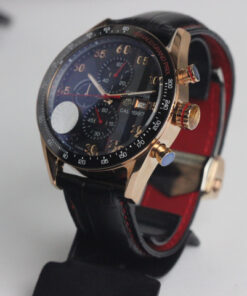 RÉPLICA DE RELÓGIO TAG HEUER CARRERA CALIBRE 1887 ,CAIXA ROSE MOSTRADOR PRETO,TAMANHO 48MM MAQUINÁRIO QUARTZ(BATERIA), PULSEIRA COURO PRETO , FECHO DEPLOYANT, QUALIDADE TOP AAA.