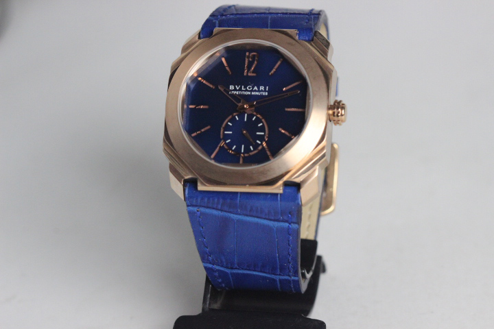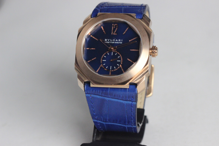 RÉPLICA DE RELÓGIO BVGARI , CAIXA ROSE MOSTRADOR AZUL TAMANHO 43MM MAQUINÁRIO QUARTZ(BATERIA) PULSEIRA DE COURO COR ;AZUL QUALIDADE TOP AAA;FOTOS REAIS DA RÉPLICA.