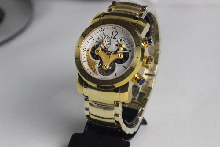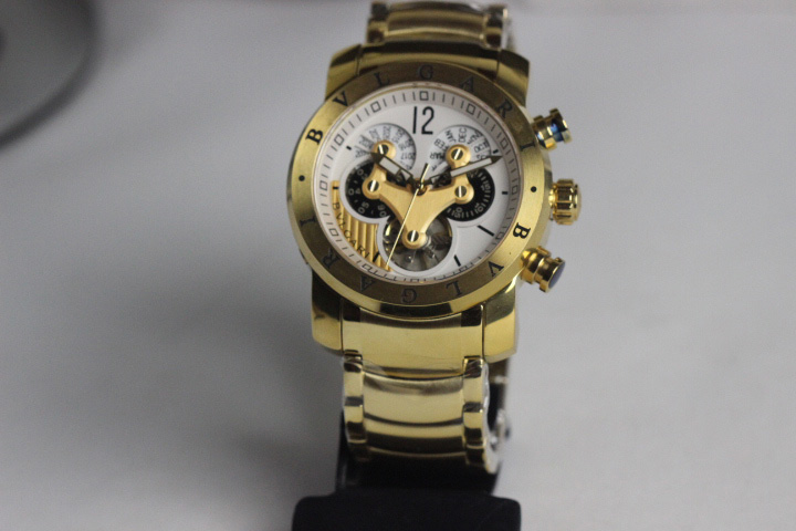 REPLICA DE RELOGIO BVGARI , TAMANHO 45MM, CAIXA DOURADA , MOSTRADOR BRANCO COM DETALHES DOURADO , FUNCIONAMENTO AUTOMATICO COM TOURBILLON, VEDADO A PROVA DE AGUA FRIA ,QUALIDADE TOP AAA FOTOS REAIS DA REPLICA;