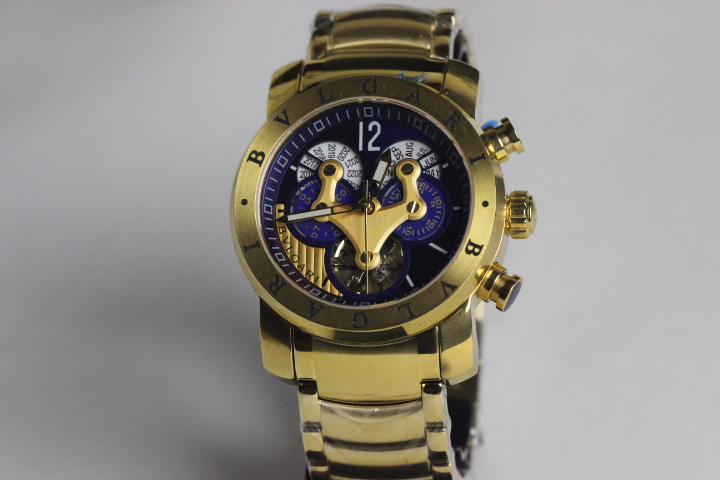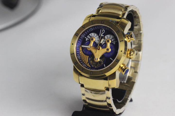 REPLICA DE RELOGIO BVGARI , TAMANHO 45MM, CAIXA DOURADA , MOSTRADOR AZUL COM DETALHES DOURADO , FUNCIONAMENTO AUTOMATICO , COM TOURBILLON VEDADO A PROVA DE AGUA FRIA ,QUALIDADE TOP AAA FOTOS REAIS DA REPLICA;