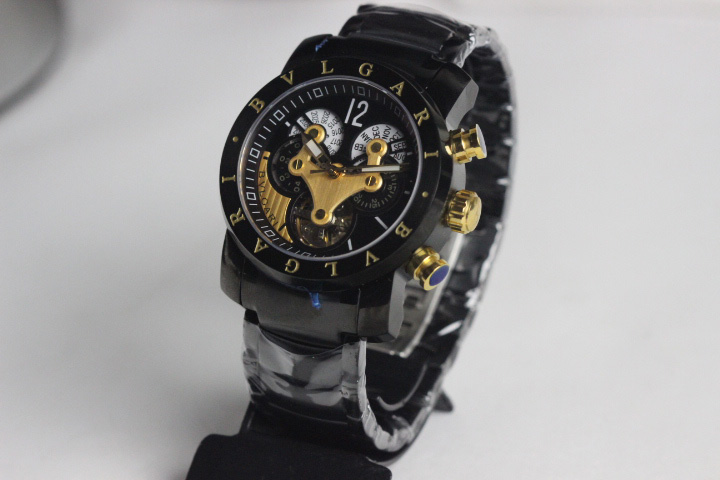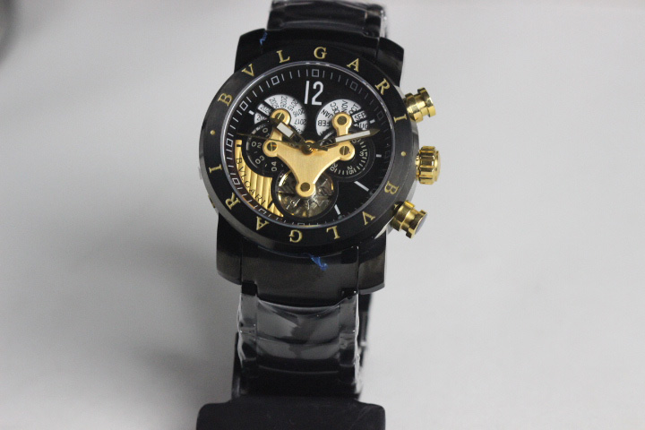 REPLICA DE RELOGIO BVGARI , TAMANHO 45MM, CAIXA TODA PVD (PRETO) , MOSTRADOR PRETO, COM DETALHES DOURADO , FUNCIONAMENTO AUTOMATICO , COM TOURBILLON VEDADO A PROVA DE AGUA FRIA ,QUALIDADE TOP AAA FOTOS REAIS DA REPLICA;