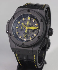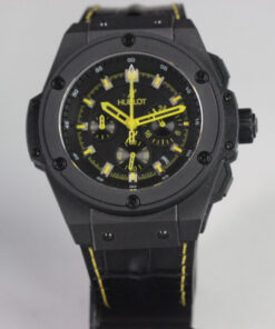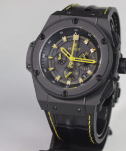 REPLICA DE RELÓGIO HUBLOT ,CAIXA TODA PVD (PRETO) MOSTRADOR PRETO COM DETHALES AMERELO MAQUINÁRIO CITZEN FUNCIONAMENTO (BATERIA),VEDADO, A PROVA DE ÁGUA FRIA,PULSEIRA DE BORRACHA REVESTIDO COM COURO COR PRETO COM DETALHES AMERELO ,FEIXO DEPLOYANT QUALIDADE TOP AAA;FOTOS REAIS DA RÉPLICA