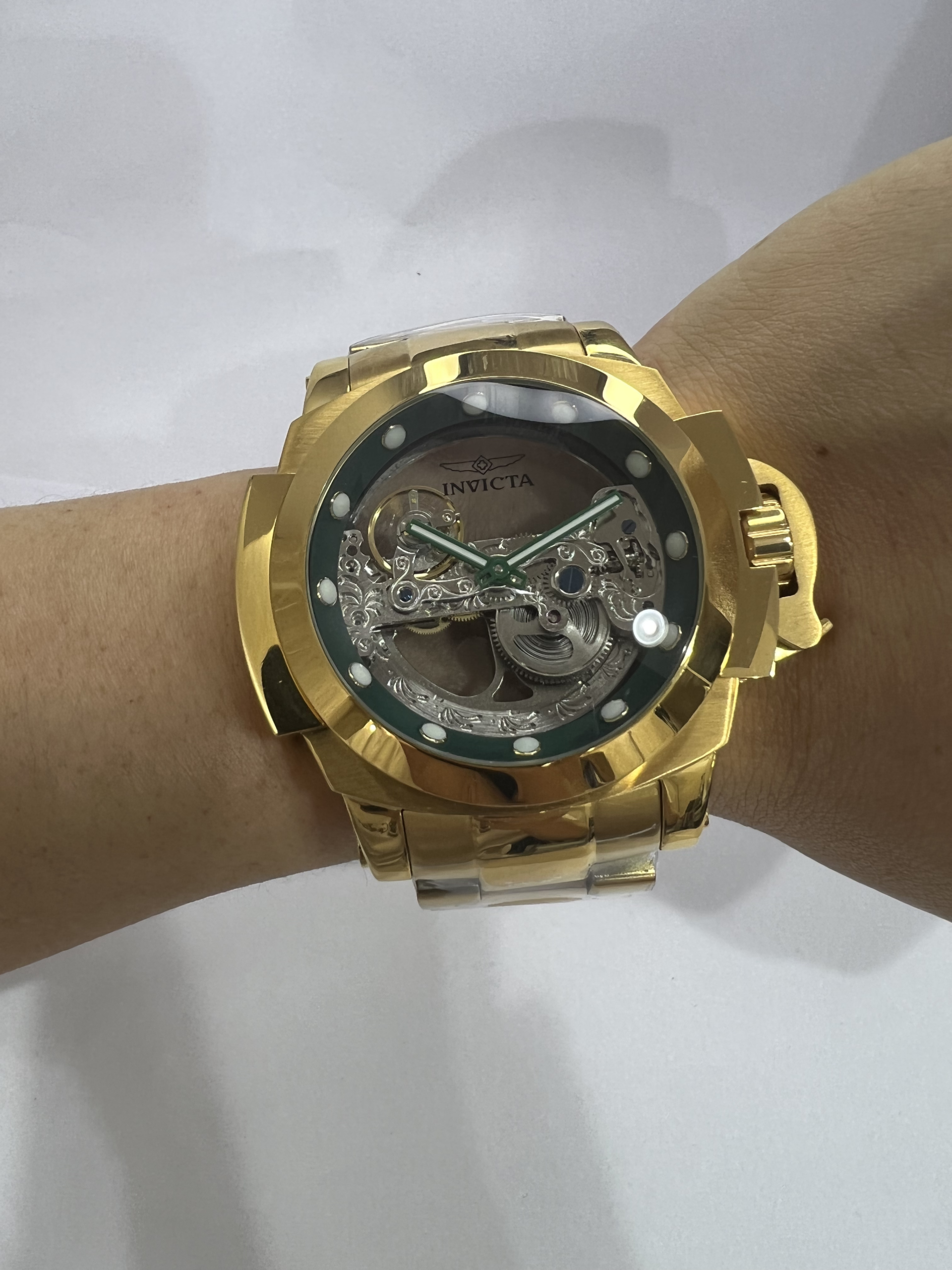 Este é um relógio Invicta Coalition, uma réplica de primeira linha AAA. Ele possui vidro de safira resistente a riscos e é à prova d’água, além de ser equipado com uma máquina da marca Citizen conhecida por sua durabilidade e precisão. O relógio vem com uma garantia de um ano para a máquina.