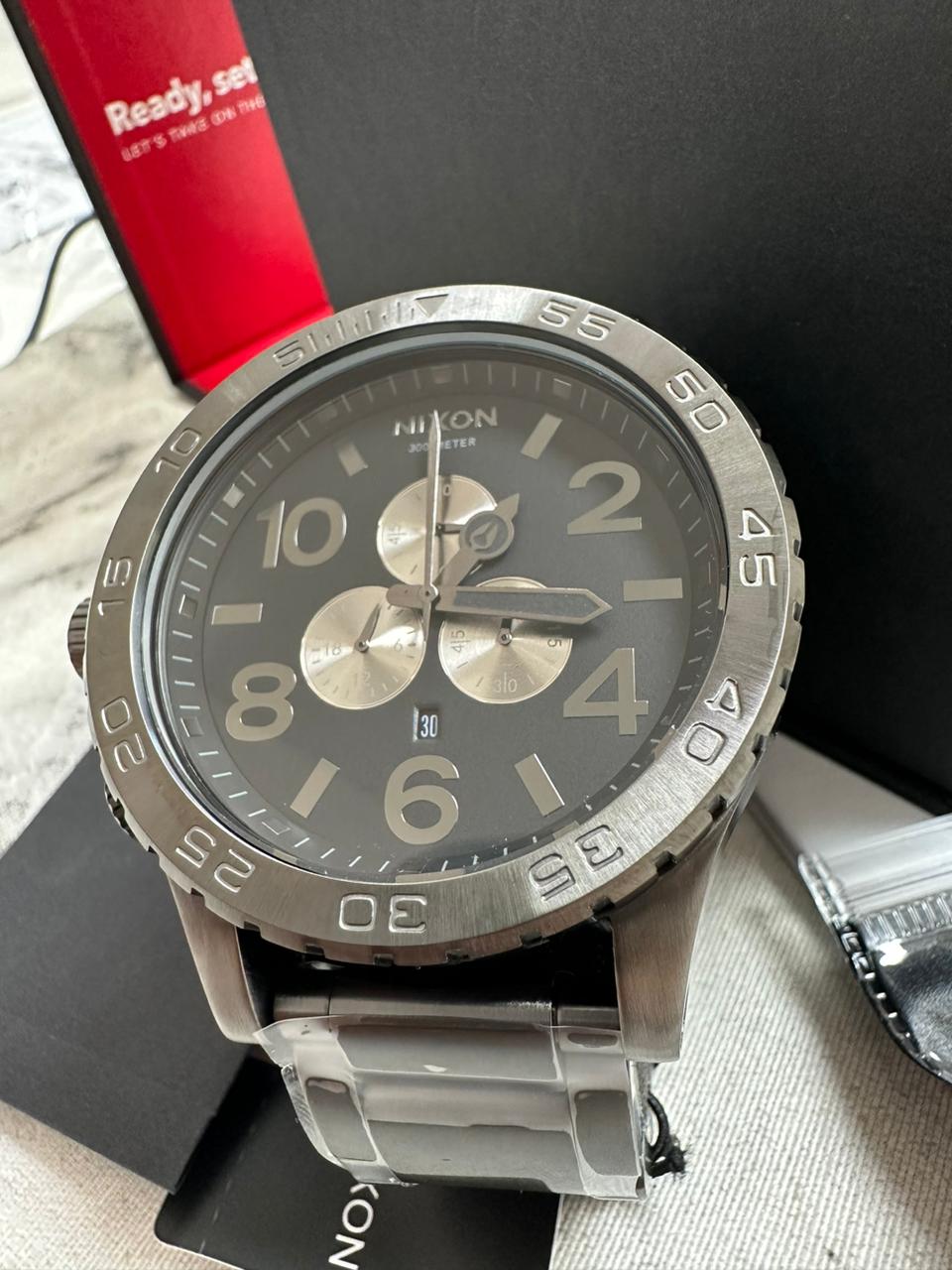 A Réplica de Relógio Nixon traz uma estética moderna que reflete a qualidade e o prestígio da marca original, com o tamanho da caixa de 52 mm conferindo um visual robusto e imponente ao mesmo tempo. A caixa e a pulseira são feitas de aço inoxidável, o que garante durabilidade e resistência ao desgaste do dia a dia. Sua vedação é resistente até 100 metros de profundidade, tornando-o ideal tanto para o uso diário quanto para atividades esportivas como natação e mergulho em águas rasas.