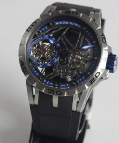 Replica de Relogio Roger Dubuis, com design elegante, este relógio é perfeito para todos os looks,caixa tamanho 48 mm em aço, mostrador preto com detalhes azul, pulseira em borracha na cor pretal,feixo deployant, maquinário Quartz Bateria. Lançamento exclusivo.