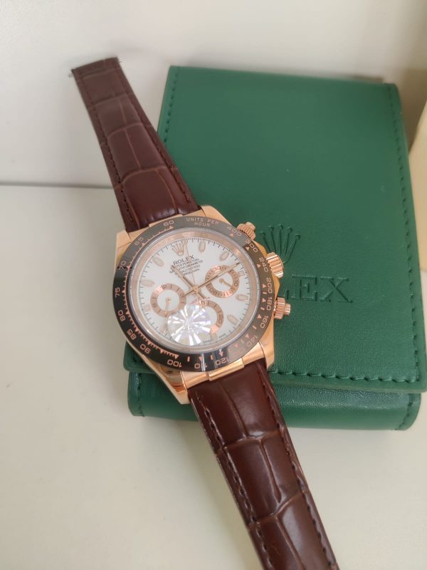 Este modelo é fabricado com alta qualidade na Itália, oferecendo um visual idêntico ao original Rolex Daytona e uma performance confiável. Seu fecho Deployant garante facilidade no uso e conforto no pulso, além de segurança. Além disso, conta com uma caixa de aço resistente e uma pulseira de couro que conferem elegância e durabilidade.