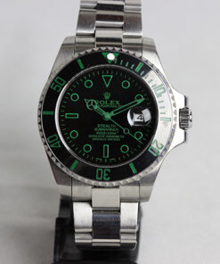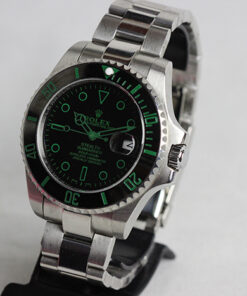 Replica de Relogio Rolex Stealth Submariner, com design elegante, este relógio é perfeito para todos os looks,caixa em aço, mostrador preto com detalhes verde, pulseira em aço, funcionamento automático (Citizen), vedado á prova de água fria.