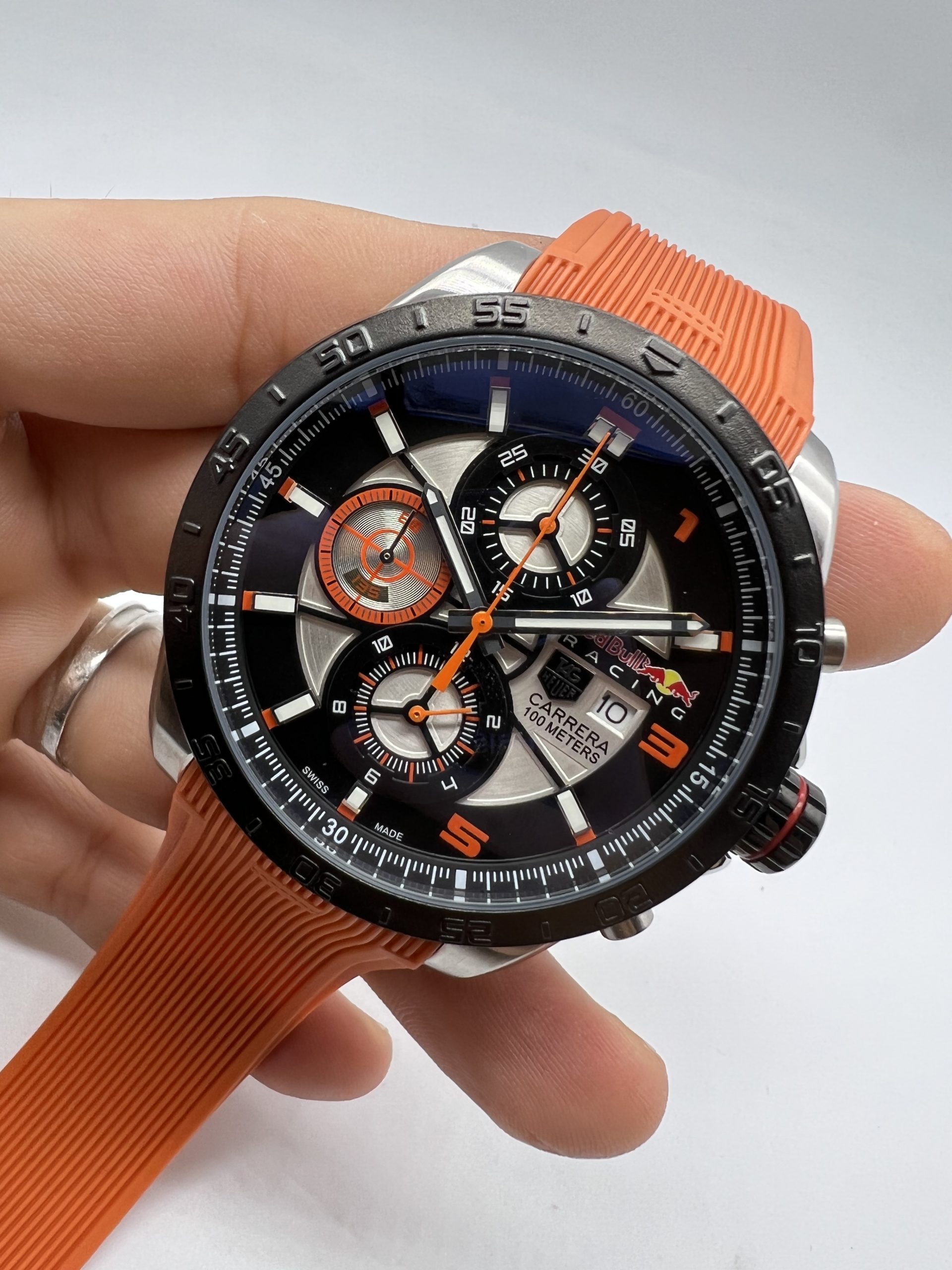 A réplica deste relógio Tag Heuer foi cuidadosamente projetada para refletir cada detalhe do modelo original. Sua caixa de 42 mm de diâmetro, fabricada em aço inoxidável de alta qualidade, proporciona durabilidade e resistência. A pulseira de borracha oferece um toque de modernidade e conforto, sendo ideal para uso prolongado. Além disso, conta com um fecho deployant, que proporciona praticidade e segurança no manuseio.