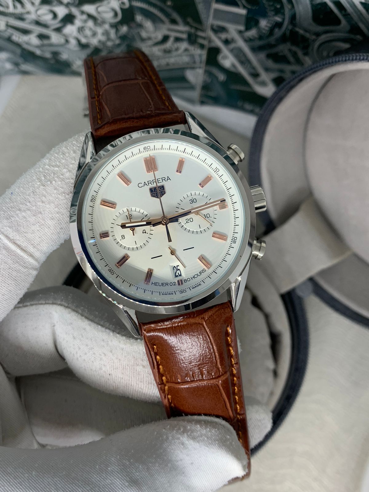 Qualidade e Precisão: Esta réplica de Tag Heuer possui o mesmo peso e tamanho do original, com caixa de 41 mm em aço inoxidável e pulseira de couro premium. A máquina é movida a bateria CITIZEN com qualidade e durabilidade garantidas, oferecendo uma excelente opção para quem deseja manter a elegância sem comprometer o orçamento.