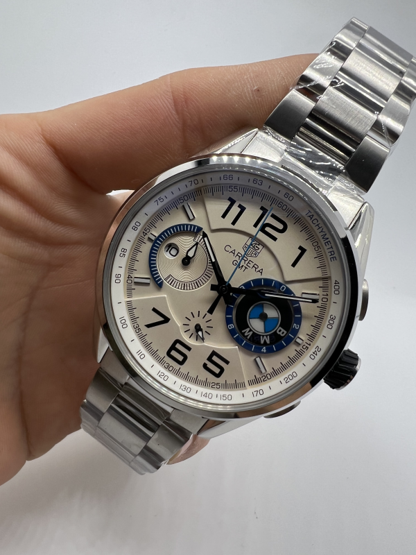 Fabricado na Itália, este modelo é uma réplica fiel do relógio original Tag Heuer BMW, garantindo uma experiência autêntica com um acabamento premium. Com caixa e pulseira em aço de alta qualidade e resistência, o relógio exibe um fecho deployant, que além de prático, proporciona maior segurança e conforto no pulso. A qualidade do material assegura um produto durável e robusto, sem perder a leveza e a ergonomia no uso diário.