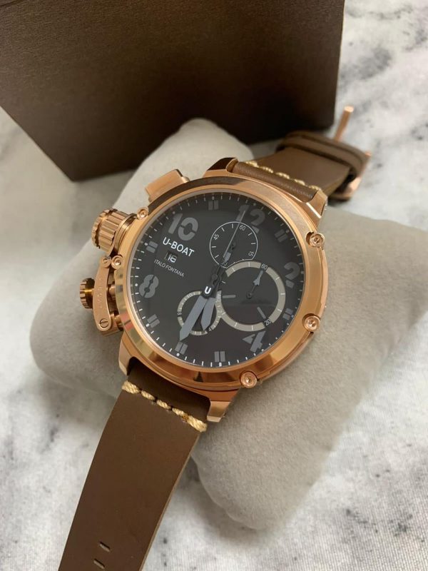 O Relógio Réplica U-Boat destaca-se por seu diâmetro de caixa de 46 mm, que proporciona um visual robusto e elegante no pulso. A caixa é feita em aço inoxidável, garantindo resistência e durabilidade. A pulseira em couro legítimo acrescenta conforto e sofisticação ao design, enquanto o fecho deployant facilita o ajuste e a segurança, permitindo que o relógio se mantenha firme no pulso.