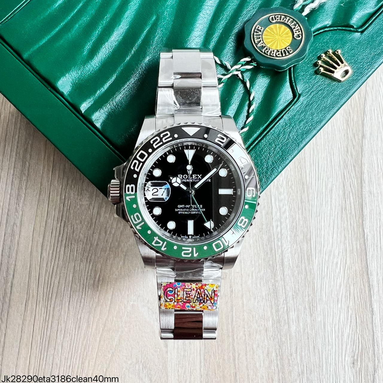 SUPER CLONE MÁQUINA ETA ROLEX GMT MASTER II PRETO VERDE SPRITE JUBILEE 40MM