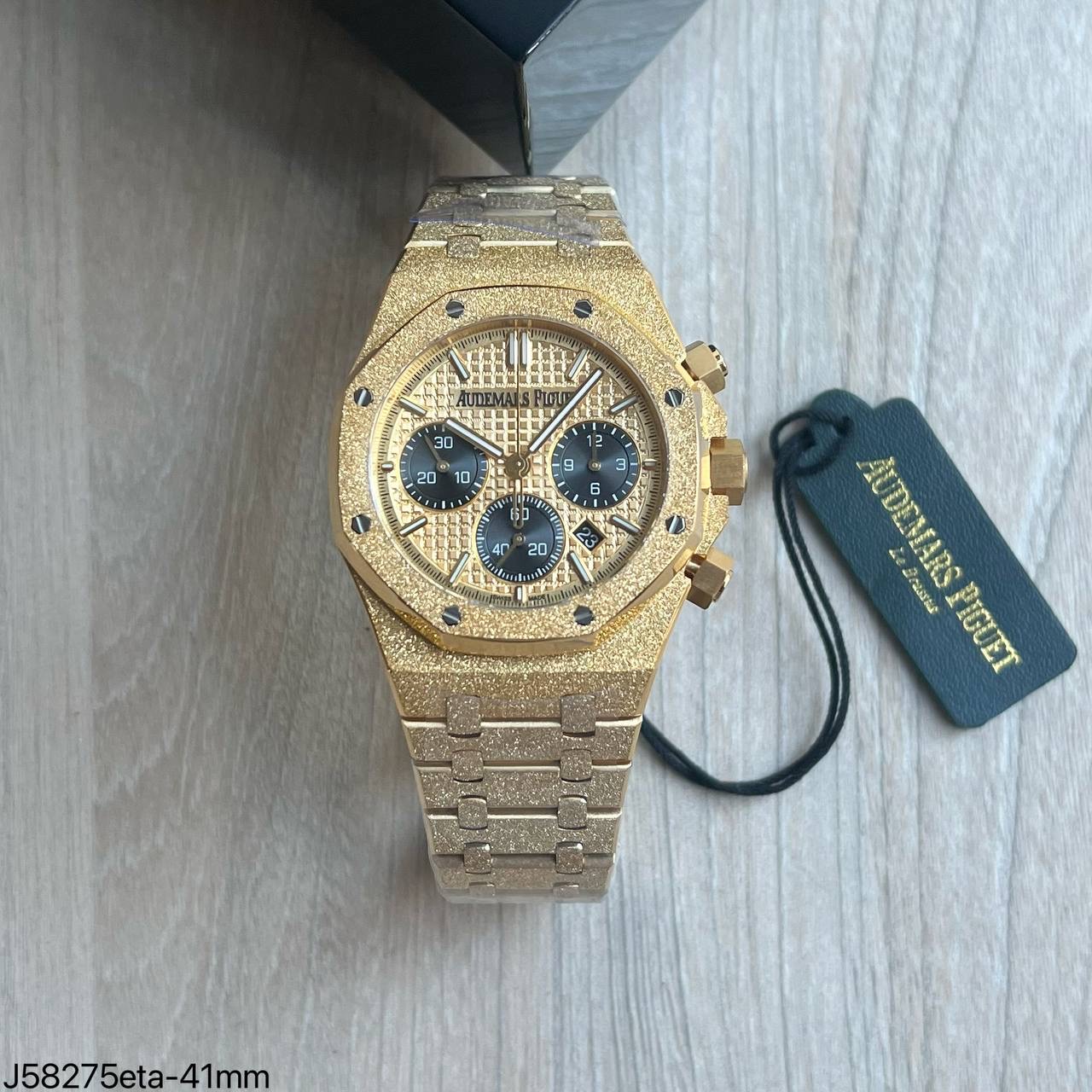 • Mostrador: Dourado com textura “Tapisserie”, um clássico da linha Royal Oak que adiciona profundidade e exclusividade ao design.